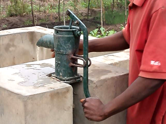 Le centre d’indigents de St Damien possédait comme seul point d’eau une mare éloignée pour 4 hectares de champs de maraîchage. Avec chaque année une saison sèche de plusieurs mois, l’arrosage des plantations était problématique. En 2010, une étude préparatoire est menée pour connaitre les données du terrain et monter un projet d’accès à l’eau. Un an plus tard, grâce à une étroite collaboration entre l’équipe de la communauté des Béatitudes de Kabinda et Florent le chargé de mission de PVDD, 3 puits sont creusés jusqu’à la nappe phréatique, complétés par des pompes à main et des bassins pour le remplissage des arrosoirs. Les cultures vivrières de St Damien sont ainsi préservées.